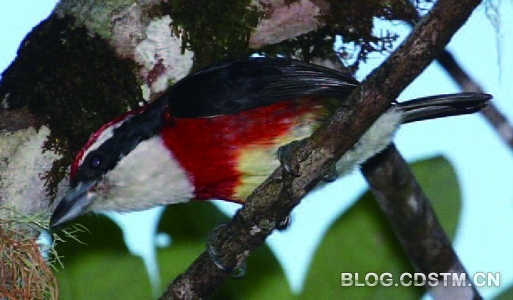 一支探险队进入遥远的秘鲁安第斯山脉, 发现一种颜色艳丽、以水果为食的鸟,并给它取了名字。这种鸟拥有黑面、灰白色腹部和鲜红色的胸部。