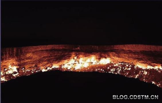 这个巨坑又大又深,事后考察团队将所有设备都搬进巨坑准备作业时才发现,它的深度根本无法测量,最后只好做罢。为了防止毒气蔓延到附近的村庄,考察队决定将坑内的气体点燃,待有毒气体燃烧殆尽后再进入探勘。遗憾的是,事情并非如人们想象得那么简单,这团烈火从来没有熄灭过,时至今日,已经燃烧了快40 年。经测试发现,这些燃烧的气体竟然就是宝贵的天然气!其组成成分主要是甲烷,同时也含有少量乙烷、丙烷、丁烷、戊烷等。这些年,已不知耗费了多少吨优质天然气。