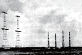 >>位于英国东海岸的“本土链”雷达典型配置方式,左侧为电波发射塔,3 座塔并排设置,是用于在塔间架设天线阵列,右侧为信号接收塔