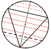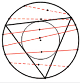 >>根据几何学原理,圆内弦的长度与弦到圆心的距离有关。从图二可以看出,当弦心距小于12 时,这条弦的长度大于三角形边长,所以这样求出的概率为12。