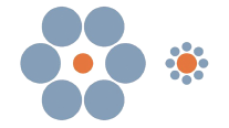 这种现象也被当成经典的艾宾浩斯错觉。如上图所示,在右侧中央的橙色圆盘被较小的圆盘环绕着,代表着在地平线附近的月亮被许多其他小物体环绕着;在左侧中央的橙色圆盘代表在天顶附近被浩瀚的天空环绕着的月亮。虽然处于两张图中央的两个橙色圆盘实际上是一样大,但许多人认为右侧的橙色圆盘看起来比较大。
