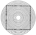 图中的正方形受到同心圆的影响,四条边看上去变弯曲了。