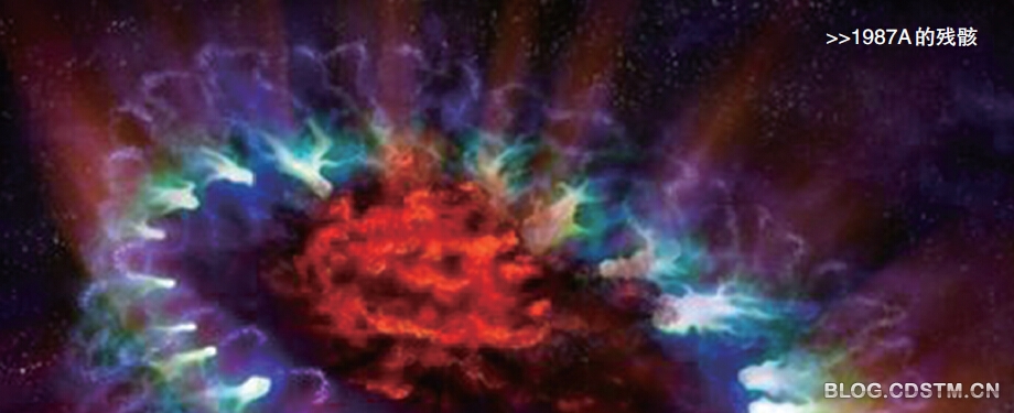美国哈佛-史密森天体物理中心的罗伯特·科什纳感叹说:“我们过去简单地认为,超新星的爆炸轮廓是呈圆形的,但超新星1987A的爆炸碎片残骸其实是呈椭圆形分布的。而且,飞速喷溅的碎片正在撞入数千年前形成的气体环中。”