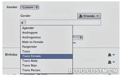 >>脸书(Facebook)中的性别选项