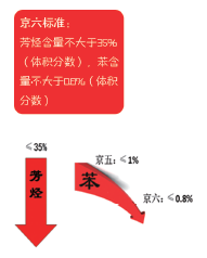 芳烃也是烃的一类,是带有苯环的碳氢化合物,大多具有毒性,例如苯、甲苯和多环芳烃,著名的致癌物苯并[α]芘就是芳烃家族中的一员。 芳烃燃烧时需要更多的氧,燃烧后也极易在发动机进气系统和燃烧室中产生沉积物,降低发动机功率,增加污染物的排放量。 如果氧气不充足,燃烧不完全,还很容易产生苯等致癌物质。 此外,质轻的芳烃同样也容易挥发,并参与光化学反应,为臭氧和 PM2. 5的形成提供便利。 所以,控制汽油中的芳烃和苯的含量也是减少大气污染、保护人体健康的重要方法。