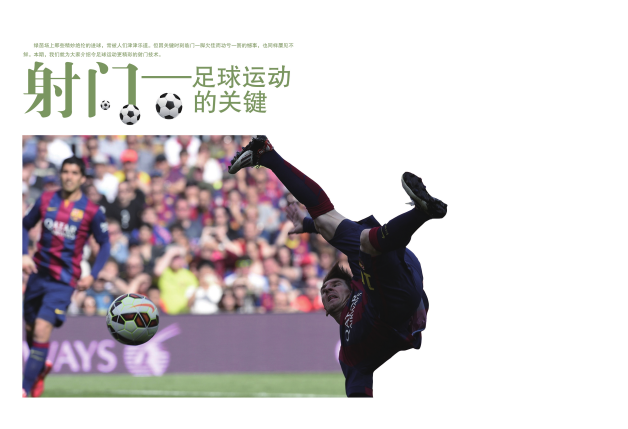 足球场上,双方球员斗智斗勇、全力拼搏,目的都是为了破门得分。足球运动员要突破对方球员的层层阻截和守门员的奋力扑救,并在高速跑动中把球射入宽7. 32米、高2. 44 米的球门,确实很困难。 因此,射门可称为足球运动的关键。