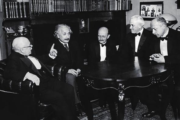 自左至右:能斯特、爱因斯坦、普朗克、密立根、劳厄,五人都获过诺贝尔奖。