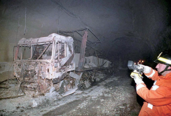 1999年3月24日,一辆卡车在勃朗峰隧道中间起火爆炸,火势迅速蔓延,大火持续了53个小时,吞噬了被困在后面的25辆车,造成38人遇难。事故发生后,勃朗峰隧道被迫关闭了3年之久,对法、意两国造成的经济损失不可估量。
