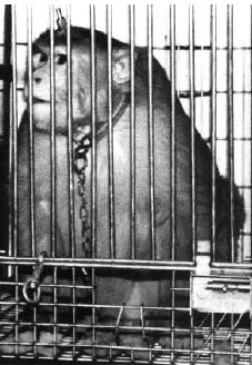 这只猴子的头被钻孔,并且置入一只探针,以注入不同的化学物质,这类的实验通常长达数月