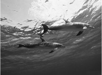 比起狗和马来,海豚对待人类有时甚至更为友好。在许多方面,你和遨游在世界江海中的30多种海豚相类似。就像你一样,海豚也是哺乳动物,在水下呆一定时间就必须游到水面上来呼吸空气。他们也同人类一样具有团队协作精神,有时为完成任务而结成小队,或者更大规模的群体。有时一个海豚发出叫声,另一个就会回应,像是在做出回答。还有时一个小群体中许多海豚以不同的方式同时发声,听起来就像很多人在聚会上交谈一样。就像你和别人交谈时做手势和改变面部表情一样,海豚也会通过身体姿势、颌的碰撞、吹起的水泡、鳍的接触这些非语言形式来交流。科学家们认为海豚交流生活中的一切,从它们的年龄这样的基本信息到它们的情感状态,无所不包。比如它们交谈时会说“嗨,那边有很多美味的鱼。”或者说“注意着那条护士鲨,它正在捕食。”如果遇到什么麻烦,一些海豚就会寻求支持。比如一只单独行动的海豚被另外两只海豚欺凌,受到屈辱的那只海豚就会在第2天召集好几位伙伴,回到事发地点,纠缠并追赶其中的一个海豚。好像那只受到屈辱的海豚要告诉它的伙伴说自己需要它们的帮助,然后引着它们去寻找那个滋事的家伙。