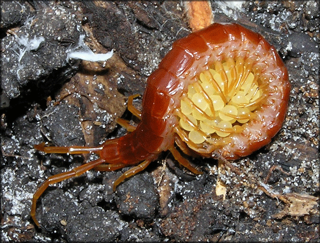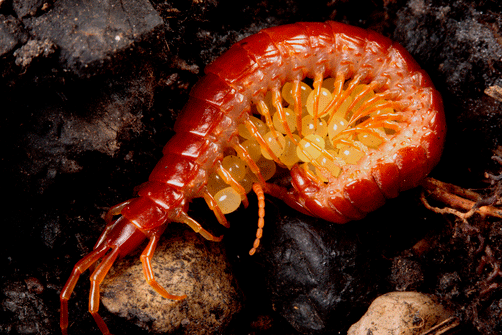 石蜈蚣的妈妈在产卵时,会将它全部的卵保存在一个“篮子”里,而它蜷起的身体就是这个篮子!即使没有食物,蜈蚣也会一直保持身体的蜷曲来包裹着它的孩子们,防止它们受到敌人的侵害,直到它们孵化出来。