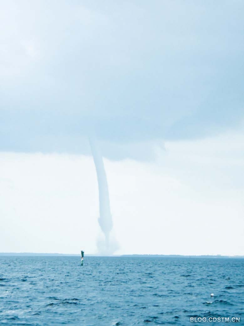 龙卷风如果发生在水面上,就会发生“龙吸水”的景象。这时,受龙卷风中心气压极度减小的吸引,水流被吸入涡旋的底部,并随即变为绕轴心向上的涡流。