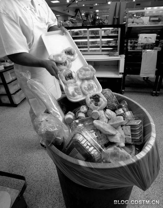 美国自然资源保护委员会的调查数据显示,每个美国人平均每个月扔掉约4.5千克的食物,换句话说,每个美国人一年内扔掉约54千克的食物,而一个美国4口之家每年浪费的食物总价,会高达2 275美元。美国人最大的弊端是,他们往往会在超市大促销时超量购入食品,吃不了就全丢掉。有个数据就可以作为说明,美国农业部估计,23%的新鲜鸡蛋的最后下场是被扔进垃圾桶里,因为消费者买得太多了。