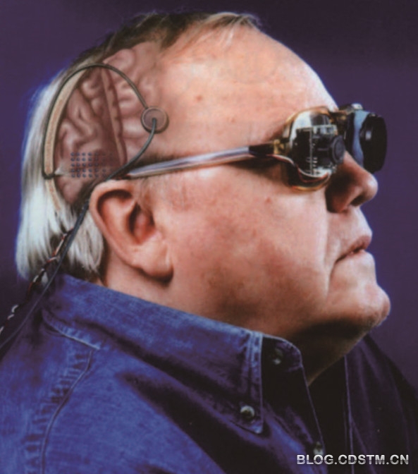 我们的视网膜上有许多视觉细胞,它们接收到光后,会把这些情报传递给眼睛的神经细胞。如果能对视网膜的神经细胞和大脑里主管视觉的视觉区域,直接加以电气刺激,将照相机拍到的画面传递给它们,那么即使失明了,也可以重新生成视觉。