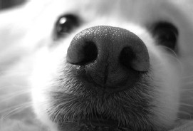 狗对气味的感知能力可达到分子水平,将硫酸稀释1000万倍后,狗仍能嗅出。人穿过的雨靴,虽经过3个月之久,警犬也能嗅出穿靴的人,最神奇的是训练有素的军犬能嗅出“蛙人”通过呼吸器从水下发出的气味,其嗅觉灵敏度比人高100万倍。
