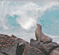 加拉帕戈斯群岛上奇花异草荟萃,珍禽怪兽云集( 依次为巨龟、红石蟹、海狮、海鬣蜥)