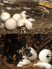 爬行类中的扬子鳄和密西西比鳄的卵在不同的温度下,也会发育为不同的性别。当温度在30℃或30℃以下时,发育为雌体;当温度在34℃或34℃以上时,发育为雄体。乌龟的卵在23℃~ 27℃发育为雄性,在32℃~ 33℃时发育为雌性。因此它们的卵产在不同高度的海岸线或河岸时,直接导致性别的不同,这有可能是由于温度对两栖和爬行动物雌、雄激素的合成有直接的影响。