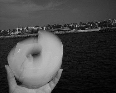 气凝胶的发明纯属偶然——1931年美国一位化学家与同事打赌的产物——将普通硅胶的水分去掉,再注入二氧化碳之类的气体,从而产生了一种如梦如幻的固体。尽管气凝胶被归类为固体,但其中99%的物质都是气体。这种气凝胶呈半透明淡蓝色,密度极小,因此人们给它起了个“冻住的烟”的绰号。