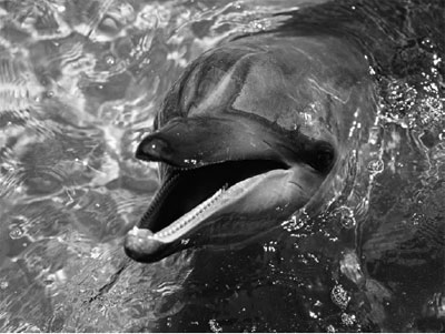 海豚是一种本领超群、聪明伶俐的海洋哺乳动物。从解剖学的角度来看,它们的脑部不但大而且重,非常发达。海豚大脑半球上的脑沟纵横交错,形成复杂的皱褶,大脑皮质每单位体积的细胞和神经细胞的数目非常多,神经的分布也相当复杂,它们的大脑皮质表面积为2 500平方厘米,是人类的1.5倍。换句话说,海豚脑部神经细胞的数目,比人类还要多。因此,无论是从脑质量和体重的比,或是从大脑皮质的皱褶数目来看,海豚脑部的记忆容量,或是信息处理能力,均与人类不相上下。在水族馆里,海豚能够按照训练师的指示,做出各种难度较高的杂技表演动作。经过训练,海豚能打乒乓球、跳火圈等。