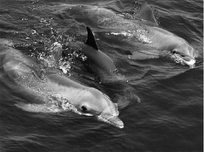海豚发出的叫声都可用来表示性别并保持群落中的联系。一个海豚家族即使散布在几十平方千米的海面上,仍能凭借叫声了解每一个成员所在的准确位置。