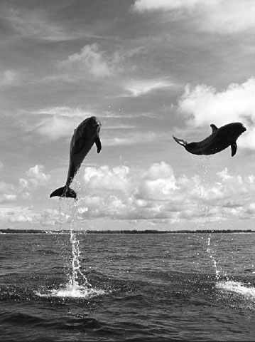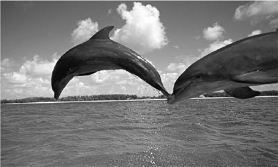 比起狗和马来,海豚对待人类有时甚至更为友好。在许多方面,你和遨游在世界江海中的30多种海豚相类似。就像你一样,海豚也是哺乳动物,在水下呆一定时间就必须游到水面上来呼吸空气。他们也同人类一样具有团队协作精神,有时为完成任务而结成小队,或者更大规模的群体。有时一个海豚发出叫声,另一个就会回应,像是在做出回答。还有时一个小群体中许多海豚以不同的方式同时发声,听起来就像很多人在聚会上交谈一样。就像你和别人交谈时做手势和改变面部表情一样,海豚也会通过身体姿势、颌的碰撞、吹起的水泡、鳍的接触这些非语言形式来交流。科学家们认为海豚交流生活中的一切,从它们的年龄这样的基本信息到它们的情感状态,无所不包。比如它们交谈时会说“嗨,那边有很多美味的鱼。”或者说“注意着那条护士鲨,它正在捕食。”如果遇到什么麻烦,一些海豚就会寻求支持。比如一只单独行动的海豚被另外两只海豚欺凌,受到屈辱的那只海豚就会在第2天召集好几位伙伴,回到事发地点,纠缠并追赶其中的一个海豚。好像那只受到屈辱的海豚要告诉它的伙伴说自己需要它们的帮助,然后引着它们去寻找那个滋事的家伙。