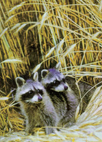 浣熊聪明而爱干净,是杂食性动物,吃鱼、蛙和小型陆生动物,也吃野果、坚果、橡树籽等。浣熊经常在树上活动,巢也筑在树上。当受到黑熊追踪时,它就会逃到树梢躲起来。到了冬天,北方的浣熊还要躲进树洞去冬眠。