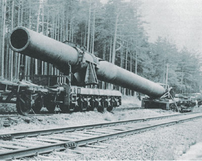二战中德国的铁道炮最为成功。起初德国设计的铁道炮最小口径为150毫米,威力明显不足,后来又增大到170毫米。尽管如此,由于这些铁道炮炮管采用1902年的“德意志帝国”级战舰上的老式舰炮炮管,难以继续改进,无法满足德军要求。1938年3月德国开始装备K12式210毫米铁道炮。与当年的“巴黎大炮”一样,它的炮管很长,达33.53米,扬起时颇为壮观。最为著名的德国铁道炮非K5莫属。K5又称“利奥波德”,口径280毫米,重218吨,深受德国炮兵欢迎。K5采用2台12轮铁道车运输,于1937年开始装备,发射255.5千克普通炮弹时,射程61千米;发射248千克火箭增程弹时,射程可达87千米。K5共制造25门,在著名的“安齐奥战役”中,K5猛烈的射击曾让盟军吃尽苦头。战后,美军将虏获的“利奥波德”运回国内,陈列在博物馆供游人参观。
