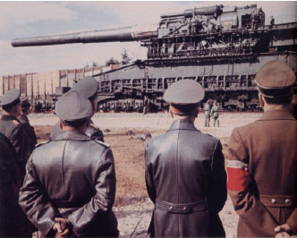 希特勒视察800毫米“多拉”巨型铁道炮,该炮被称为“重型古斯塔夫”