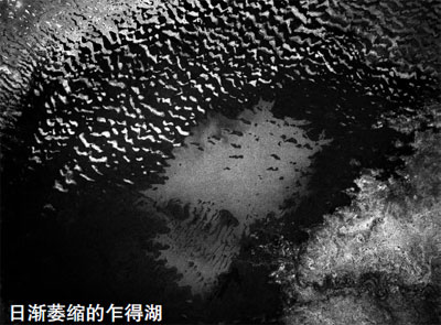 缩小90%的乍得湖 位于乍得、尼日尔、尼日利亚和喀麦隆交界处的乍得湖是非洲第四大淡水湖,但其干涸速度着实令人担忧——50年来,乍得湖的面积已经缩小了90%!如今,尼日尔已经失去了与乍得湖的交界点。常年干旱巳经导致大批居民成为环境难民,因为他们必须改变以往以捕鱼为主要来源的生活方式,转而发展农业。