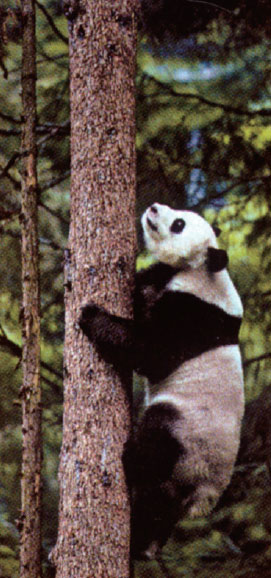 大熊猫就像一个初学走路的孩子一样,它蹒跚地走过来,铺开腿坐下,用力咀嚼竹子。熊猫的下颚强而有力,它的臼齿比普通人的大3倍,很容易就咬开并磨碎坚韧的竹子。它一天毫不费力地就吃掉13~18千克的竹子,就像人们吃胡萝卜那样简单。
