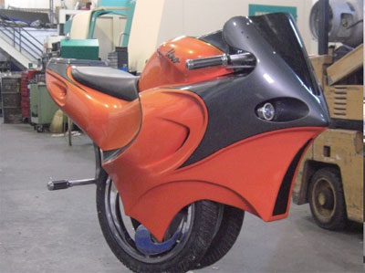 更加奇特的是,它没有普通摩托所具有的排气管、挡位或刹车装置,只有一个开关按钮,完全依靠驾驶者的身体控制。如果想要前行,你只需要把身体前倾,停车或后退则把身体靠后。行驶速度完全取决于身体前倾或靠后的程度。连拐弯也靠身体来控制,左倾就左拐,右倾就右拐。它是一款十分少见的一辆能倒车的摩托,骑行者只要身体往后倾就能倒退行驶。如果不小心前倾或后靠的程度太大了,会不会栽跟头或倒下呢?不用担心,前后都有撑子,不会轻易摔倒。