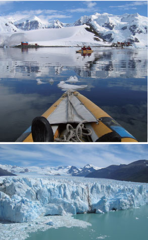 巴塔哥尼亚冰原是地球上除南极大陆以外最大一片冰雪覆盖的陆地。阿根廷冰川国家公园内有47条发源于巴塔哥尼亚冰原的冰川,公园所在的阿根廷湖接纳了来自周围几十条冰川的冰流和冰块,其中最著名的是年轻的莫雷诺冰川,年龄只有20万年,是世界上少有的现仍“活着”的冰川,每天都在向前推进30厘米。由于冰川的冰舌推进至湖面的常温地带,冰川的融化因地球变暖更为加速,使其不断发生崩塌。1981年莫雷诺冰川被列入联合国世界自然遗产。