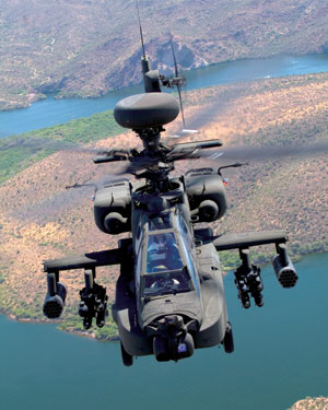 既然这么有用,武装直升机自然得到了人们的重视。后来美国又开发出第二代专用武装直升机,这就是AH-64“阿帕奇”。“阿帕奇”是古代北美印地安人中一个特别彪悍善战的部落。用其命名的这种武装直升机也果真够凶猛。在海湾战争中和伊拉克战争中曾大显身手,给敌方造成了严重损失。