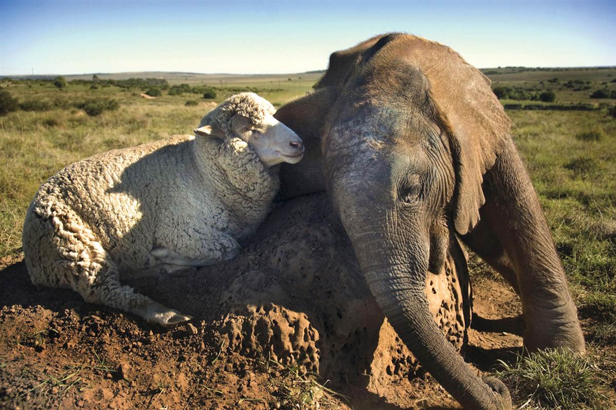 野鸭和翠鸟:在德国法兰克福市郊的一处湿地保护区里,一只短颈野鸭不幸和父母分散。它找到了一个同病相怜的小伙伴,那是一只失去父母的笑翠鸟。虽然两只鸟儿都乳臭未干,但是由于笑翠鸟个头较大,它常常充当小野鸭的“保护伞”。