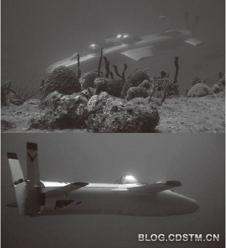 在潜水器的设计中,包围福斯特座位的压力壳是最大的挑战。幸运的是,霍克斯了解到,早在20年前,圣地亚哥国家深潜设施中心的海军科学家杰里·斯塔仕已经就此问题展开了秘密研究。当时海军对开发轻型、圆柱形壳体,并能潜入水下6 096 米之下的无人驾驶舰艇很感兴趣,斯塔仕因此对很多复合材料都做过研究,包括陶瓷、玻璃和碳纤维。霍克斯随即联系了已经退休的斯塔仕,请他担任自己的项目顾问。在浮力问题上,霍克斯使用了专门订制的泡沫型材料。他的承包商提供了一种由碳纤维编织的材料,用以制造圆柱形压力壳。设计可在约11 000 米的海底深度24 小时自动航行,潜水艇的“翅膀”和推进器能够让它在海底“飞行”10 千米以上,同时拍摄视频和收集数据。
