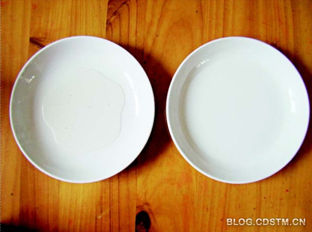 2. 在两个盘子里分别装上洗涤剂和清水。