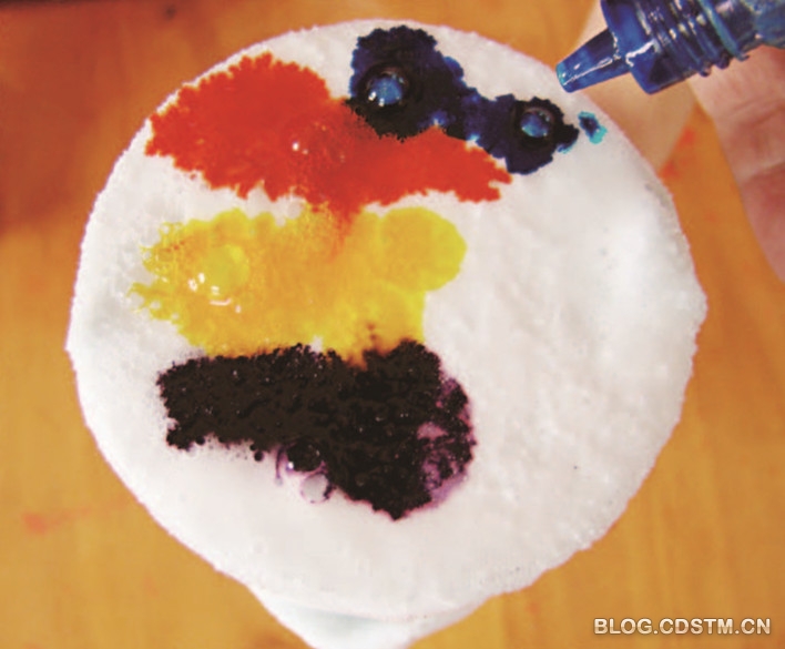 4. 将各色色素滴在袜子上。