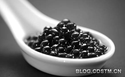 然后,就是小朋友们最喜欢的甜品了,可是,为什么端上来的分明是鱼子酱?舀一勺放在嘴里,鱼子酱在舌齿之间迸开,入口的居然是甜甜的芒果味道。这究竟是怎么做出来的?让我们的目光转向厨房,只见厨师拿出了一个针筒,先用针筒吸进一些淡黄色液体,一滴滴缓缓注入水中。没有冒烟、甚至没有发生任何剧烈的反应,盆底安然地躺着一撮淡黄色珠状物。很神奇吧?其实说穿了也很简单,那淡黄色的液体是调制好的芒果露,里面还加入了海藻胶,那水也并非是清水,而是加入了钙粉,当芒果露滴入水中,海藻胶和钙发生反应,马上凝结出一层软壳,像胶囊一样裹住了芒果露,鱼子酱就是这样变出来的。