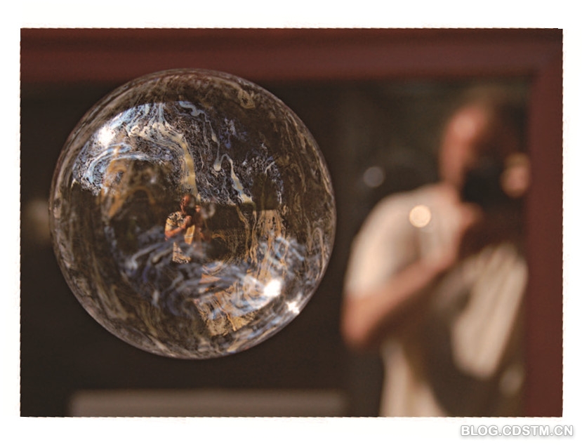 英国摄影师理查德·希克斯多年来专注拍摄肥皂泡。在他的作品中,我们能欣喜地看到肥皂泡的一生。他经常把倒映在肥皂泡中的景象拍摄得非常漂亮,而光线在气泡表面折射形成的色彩也绚烂无比。最有技术含量的还是他用一部普通数码单反相机拍摄出高速相机的效果,将肥皂泡破灭的整个过程都拍摄下来。