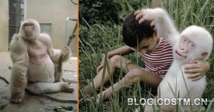 这些动物界的白色弃儿却是人类眼中不可多得的宠儿,世界各地的动物园都以能够拥有白化动物为荣,在众多的白化动物中,最家喻户晓的“白色天使”当属西班牙巴萨罗那动物园的白化大猩猩“雪花”了,它是目前世界上发现的唯一一只白化大猩猩。“雪花”出生在野外,基因突变导致它全身的皮肤和毛发缺少黑色素而呈现出白色。1966年,它在几内亚被几个当地居民发现,之后就被送到了巴萨罗那动物园。在动物园里,它受到了精心照料,许多人都慕名前去一睹“雪花”的美丽,它在动物园里无忧无虑地生活着,直到2003年因为皮肤癌去世,寿命40岁。它去世后,科学家分析研究了“雪花”的冷冻血液样本,发现“雪花”父母是近亲关系,双亲DNA基因具有12%相似性,从而直接导致了“雪花”的白化症。