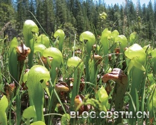 在美国加利福尼亚州北部与奥勒冈州的山地沼泽中,生长着一种酷似眼镜蛇的植物——眼镜蛇草,它的瓶状捕虫叶形状非常奇特,就像一条被激怒的眼镜蛇挺起前半身,靠着这种威风凛凛的伪装,眼镜蛇草生生不息。