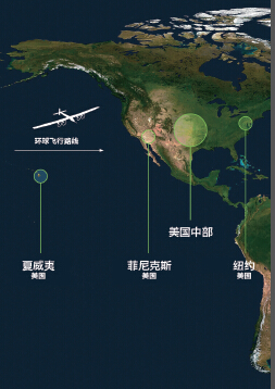 本次环球飞行中最长的一段航程是从南京飞往夏威夷,将历时5 天5 夜,横跨整个太平洋。在这段航程中,飞行员基本不眠不休,只能每隔3 小时休息20 分钟。