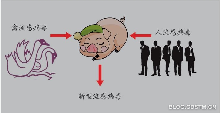 一直以来,有一个新型流感出现的故事情节是:感染了人流感的猪偶然地感染上了禽流感,两种流感病毒的基因在猪的体内发生重组,从而产生了一种新型流感。这有很大的可能性。而这种新型流感病毒就变得很容易在人群间传染了。