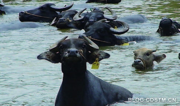 3 牛:牛汗腺不发达,仅在脚趾间的皮肤和口、鼻处有汗腺分布。牛类中,尤以江南的水牛最怕热。炎热的中午,水牛非全身浸泡在水里不可。