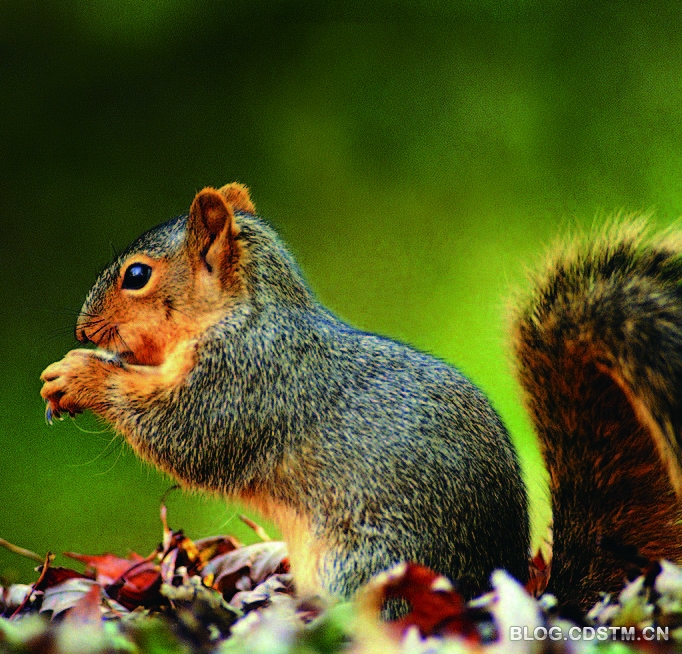 5. 松鼠:松鼠的汗腺在爪子上。当松鼠特别热的时候,会把身体贴在地上,以这样的方式散热。有时,松鼠还会把粗大的尾巴竖起来,起到“遮阳伞”的作用——阻挡阳光直射身体,为自己带来一片阴凉。