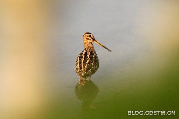拍摄中,拍摄对象与倒影“相映成趣”,会使画面更具活力、动感和美感,有时又会使画面表现得更为宁静和优雅。因此,鸟类自身的倒影在画面中是非常重要的元素,需要拍摄者细致地去表现。拍摄时,要尽量将倒影完整地构入画框中,有时候甚至倒影才是真正的拍摄主题。