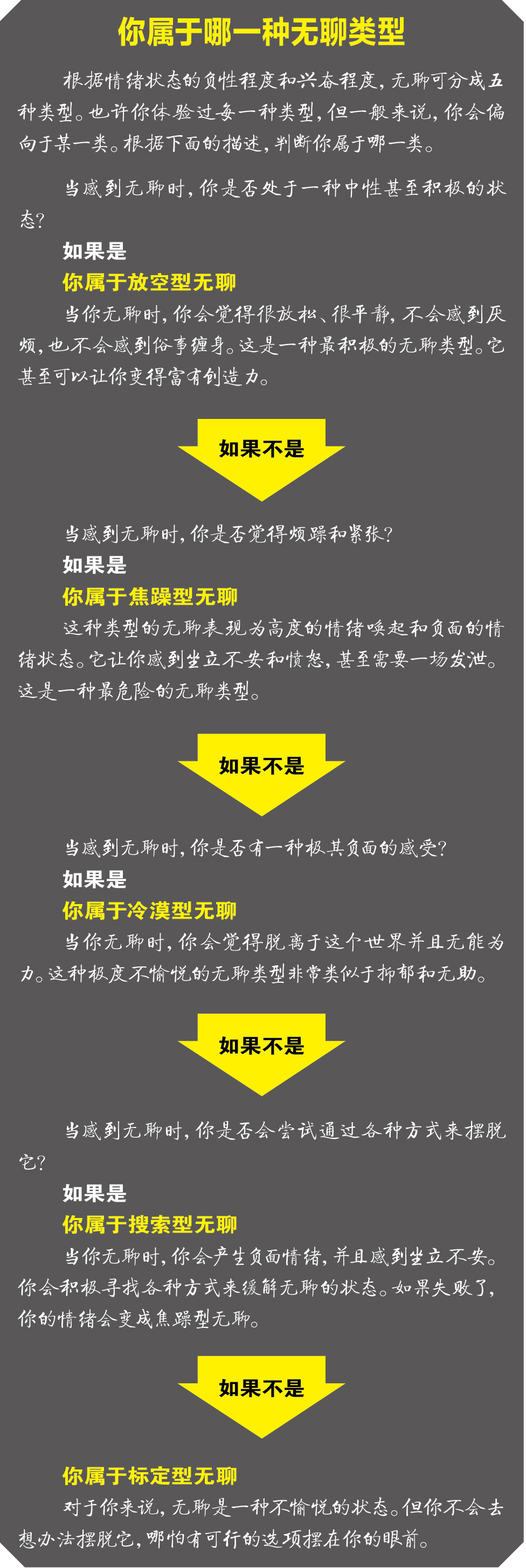 其实,所有情绪都在提醒我们当前的状态。无聊提醒我们处于压抑状态,有未施展的潜能和与世界互动的欲望。问题是,无聊的状态很难应对。