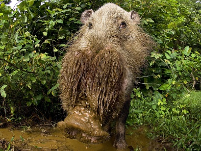 东南亚的岛屿上生活着两种须猪,它们从鼻梁到头部两侧,再到下巴,都长着格外浓密的长毛,就像大胡子一般,难怪名叫须猪呢!