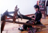 把花带中间的挑花部分穿上综丝,花纹图案是靠手工操作综丝来控制的。