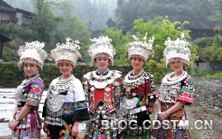 2014-08-06 11:44:21 在那些古色古香、保存完好的苗寨里,最让人心醉的风景便是苗家女子身着的那些流光溢彩的服饰。苗族服饰堪称是人间最美丽的彩虹,它种类繁多,款式多样,有的雍荣华贵,有的古朴庄重,有的粗犷豪放,有的精致优雅……当然,尤以女装最为丰富多彩。苗族人在自己的服饰上用斑斓的彩线,为本民族的文化做了最精湛的注解。